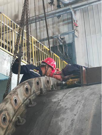 檢修期間,技術(shù)人員全程現(xiàn)場駐點(diǎn)指導(dǎo)與監(jiān)督。從舊端蓋的拆卸、接觸面的精細(xì)打磨處理,到新端蓋的精準(zhǔn)起吊定位以及最終的密封性能測試,每一道工序均嚴(yán)格遵循既定工藝標(biāo)準(zhǔn)和質(zhì)量要求。面對端蓋重量大、安裝空間受限等技術(shù)難題,檢修團(tuán)隊(duì)迎難而上,憑借專業(yè)的吊裝設(shè)備和精湛的操作技能,平穩(wěn)高效地完成了舊端蓋拆除與新端蓋安裝就位。經(jīng)過細(xì)致調(diào)整連接螺栓的緊固力矩,確保了端蓋與筒體之間達(dá)到卓越的密封效果。安全監(jiān)督人員全程旁站監(jiān)護(hù),對吊裝作業(yè)、動(dòng)火作業(yè)、臨時(shí)用電等關(guān)鍵環(huán)節(jié)實(shí)施嚴(yán)格安全管控,有力保障了整個(gè)施工過程的安全零事故。通過全體參檢人員的協(xié)同攻堅(jiān),端蓋更換任務(wù)較原計(jì)劃提前17小時(shí)圓滿完成。